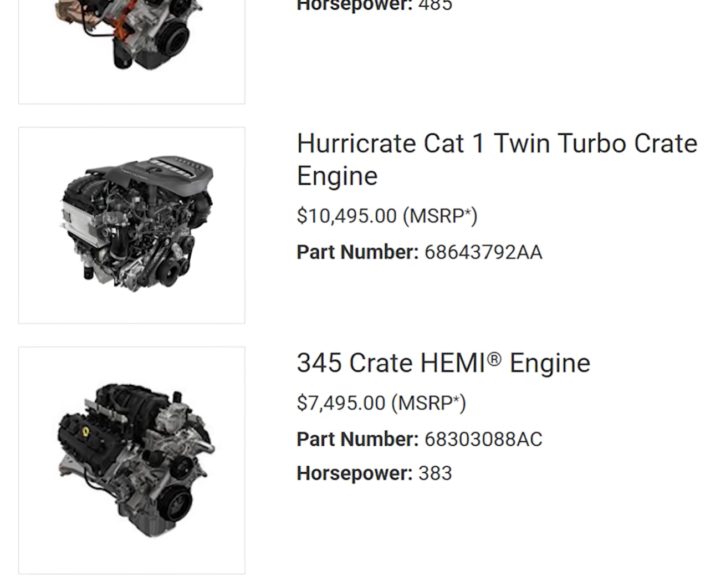 Consequently, we expect this “Hemi tax” to transfer to the Charger lineup. You will pay a premium to get the V8 back. However, this pricing strategy contradicts actual manufacturing costs. For example, crate engine prices tell a different story. The Hurricane crate engine is roughly $3,000 more expensive than the 5.7L Hemi crate engine.
