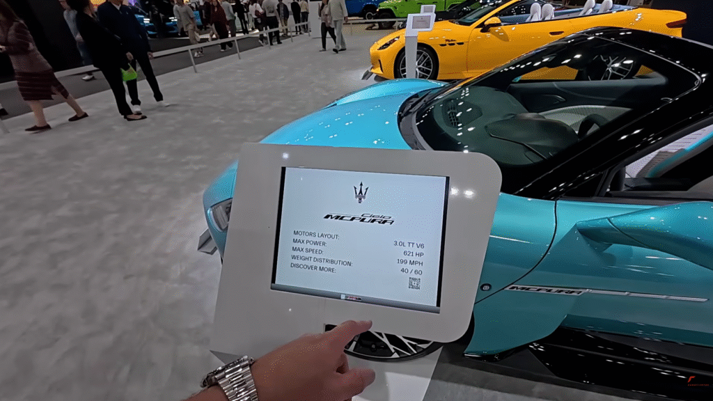 Since Dodge is under the Stellantis umbrella, we also checked out the Maserati Cielo McPura. They are changing the names, but the performance remains. This car has a 621 horsepower 3.0L twin-turbo V6. However, I need to clarify something. Specifically, some people think this is the same engine they are putting in the Chargers. Actually, it is not. This is a totally different engine.