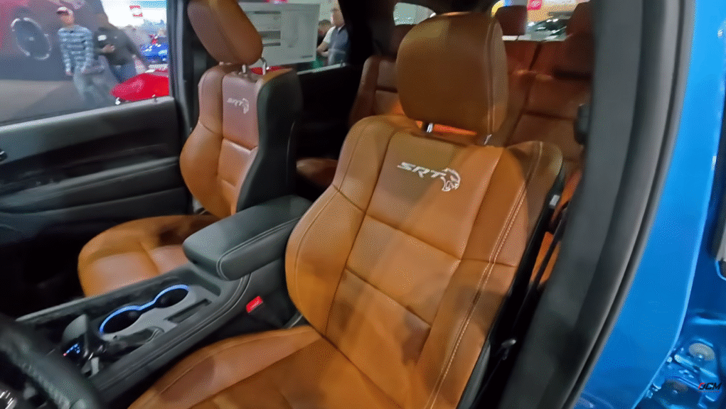 Now, let’s look at something we can actually get excited about. The Durango Hellcat is back. I am so glad they kept this thing around. The model on the floor is a Jailbreak edition. It features the forged carbon fiber interior, which I love. Importantly, these are CARB legal for California again. For a while, that was a major issue. Initially, they said no to California. Now, you can get them everywhere.